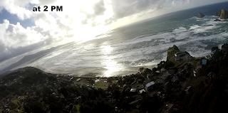 Thanks to Ray who provided me the info of Neahkahnie (35 miles north of Oceanside), an old hang gliding site where I'd went to check out this morning around 9 am. Winds were coming in at a perfect direction with guaranteed soarable conditions which made it tempting to fly. However, I passed on it since I was alone and haven't flown there before. Also, the 3 miles walk back up from beach LZ to launch was a bit too much, maybe next time. I'll post more videos and pics for later. After exploring Neahkahnie, I went back to Oceanside and had the sky to myself for 1.5 hour in smooth light wind condition.