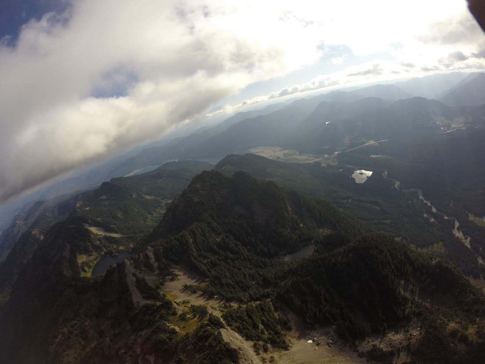 Gliders were virtually stacked on top of each other at the cramped launch area. Travis launched around 1430 and got a hundred feet above launch, but it wasn't turned on yet. Slowly people launched and started getting higher. Stas and I were the last to launch just before 1600. Lift was really strong and it was a nice straight trip to the first wall, then Rampart, then Alta. There I found lift to 7000' but it got really choppy and confused so I didn't stay long. Guys were all spread out by this time. Big Eric became Little Eric cause he was so high. Marty, Kurt and maybe some other guys pushed farther back behind Alta. As it was Labor Day weekend, there were a bunch of tents set up around the Rampart Lakes, and some hikers climbing up to Alta. No clouds to be seen or surfed, and the visibility was more than enough to discredit any flat-earthers. Super nice day. I spent a couple of hours scoping out campsites at Rampart and looking at the vast expanse of wilderness to the North, then headed back. The LZ was a little bumpy coming in but smoothed out down low.